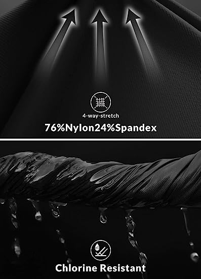 - UPGRADED Ultra Elastic: 76% Nylon 24% Spandex, 4-Ways Stretch, UPF 50+, Chlorine-Resistant, Quick-Dry.