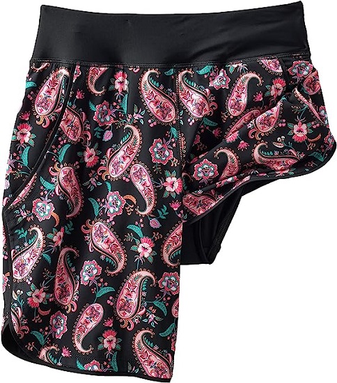 - Modest Design Features: Sits just below your natural waist. Adjustable inner drawcord. 9 inch inseam ensures full coverage in back. Handy small pocket plus a pocket in the waistband. Panty liner sewn in.