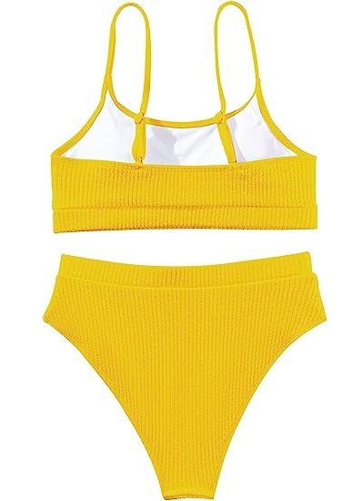 High Waisted Tummy Control Ribbed Bikini Crop Top Swimsuit Set 2 Piece