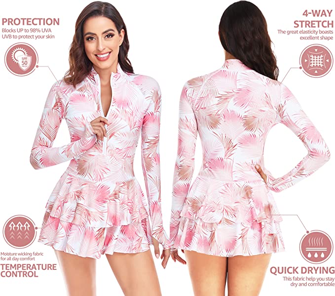 - One-piece design: All-in-one design which can ease your move and reduce wave drag while surfing or swiming. Contrast floral pattern blocking with princess line design lend a feminine shape and fit.