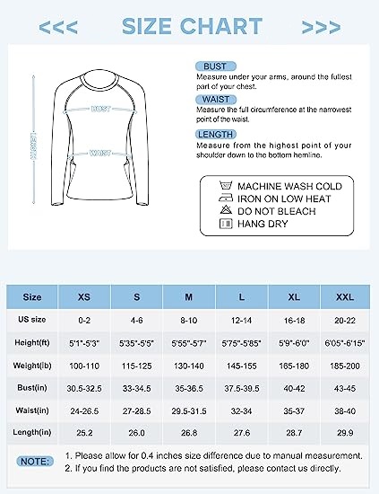 - Moisture Wicking & Flatlock Seams Design: Womens rash guards long sleeve wick away the sweat and allow for the airflow to keep you cool and dry in the hot weather. UV protection clothing women also boast a tag-free design and flatlock seams, which minimize friction and increase comfort.