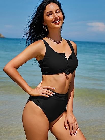 - Bikini set for women high waist swimsuit tummy control bathing suit 2 piece swimsuit front knot swimwear.